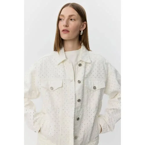Maak je dagelijkse look compleet met deze ecru denim jas voor dames van Sofie Schnoor. De korte, recht gesneden spijkerjas heeft een klassieke kraag en lange mouwen, waardoor hij het hele voor- en najaar meegaat. De ecru kleur geeft een frisse, lichte uitstraling die net wat zachter oogt dan klassiek blauw denim en makkelijk te combineren is.Praktische details in een rustig design Gemaakt van 100% katoen, voor een stevige maar toch soepele denimkwaliteit Korte lengte voor een moderne, vrouwelijke pasvorm Knoopsluiting aan de voorzijde voor eenvoudig aan- en uittrekken Borstzakken en zijzakken voor kleine essentials Effen uitvoering in ecru voor een rustige, veelzijdige basis Rechte mouwen voor een relaxte, comfortabele look Onderdeel van een co-ord set, voor wie graag een bijpassende outfit draagtIdeaal voor laagjes in het voorjaarDeze korte denim jas is geschikt over een T-shirt, luchtige trui of jurk tijdens lentedagen. De neutrale ecru kleur combineert makkelijk met lichte wassingen, zachte pastels en aardetinten. Praktisch voor onderweg, op het terras of een dagje stad.Sofie Schnoor studio collectieDe studio collectie van Sofie Schnoor bestaat uit doordachte items met een moderne, vrouwelijke uitstraling. Stukken met aandacht voor materiaal en pasvorm, die zich goed laten combineren met andere favorieten in je kast.Een veelzijdige jas die je garderobe een frisse, lichte update geeft.