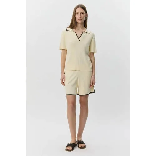 Deze dames polo van Sofie Schnoor brengt een verzorgde, moderne look samen met luchtig draagcomfort. De ecru basis met zwarte contrastbies geeft een grafische, maar toch rustige uitstraling, ideaal voor zomerse dagen waarop je er netjes uit wilt zien zonder veel moeite. De ribgebreide structuur sluit mooi aan, terwijl de korte mouwen en polokraag het shirt een tijdloze twist geven.Verfijnde details voor elke dag Kleur: ecru/zwart met subtiele contrastbies voor een rustige, maar duidelijke belijning Materiaal: 50% katoen / 50% tencel, voelt zacht en soepel aan op de huid Rib gebreid: zorgt voor een mooie structuur en een comfortabele fit Polokraag zonder sluiting voor een nette, maar ontspannen uitstraling Korte mouw, passend bij het zomerse seizoen Effen ontwerp, makkelijk te combineren met verschillende onderstukken Onderdeel van een co-ord set, voor wie graag een compleet afgestemde outfit draagtVeelzijdig in je garderobeDeze polo draag je net zo makkelijk op een hoge jeans als op een aangesloten rok. De lichte kleur en het aansluitende ribbreisel maken het shirt geschikt voor zowel een werkdag als een ontspannen lunchmoment.Sofie Schnoor studio collectieSofie Schnoor staat bekend om een Scandinavische benadering van mode, waarin comfort en stijl samenkomen. De studio collectie richt zich op draagbare items met doordachte details, zodat je met één stuk al een verzorgde basis voor je outfit hebt.Een rustige, moderne polo die je garderobe op een subtiele manier compleet maakt.