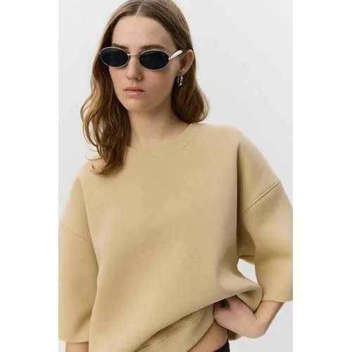 Ga voor een zonnige look met deze korte katoenen trui met wijde mouwen van Sofie Schnoor. De trui heeft een frisse gele kleur die direct opvalt en driekwart mouwen met extra ruimte, wat zorgt voor een luchtig gevoel. De ronde hals en rechte pasvorm maken het een basic met een speelse twist. Geschikt voor zomerse dagen waarop je net iets meer bedekking wilt, zonder dat het te warm wordt.Details die het verschil maken Gemaakt van 100% katoen, voelt zacht aan op de huid en is prettig om te dragen op warme dagen Korte lengte, mooi op een hoge taille broek, rok of bijpassend item uit de co-ord set Driekwart mouwen met wijde pasvorm voor een moderne, luchtige look Ronde hals die netjes langs de halslijn valt Backprint aan de achterkant voor een verrassend detail Zonder zakken voor een rustige, cleane uitstraling Onderdeel van de Studio collectie, ontworpen voor het zomerseizoenLuchtig en makkelijk te stylenDeze trui is geschikt voor dagen waarop je licht wilt dragen, maar toch iets met mouw zoekt. Combineer met een jeans en sandalen voor een casual outfit of draag hem met de bijpassende co-ord items voor een afgestemde look.Sofie Schnoor studio collectieSofie Schnoor staat bekend om eigentijdse ontwerpen met doordachte details. De Studio collectie is ontwikkeld met aandacht voor draagbaarheid en stijl, zodat je items eenvoudig met elkaar combineert tot een moderne, dagelijkse garderobe.Een frisse, gele trui die goed past op lichte, warme dagen.
