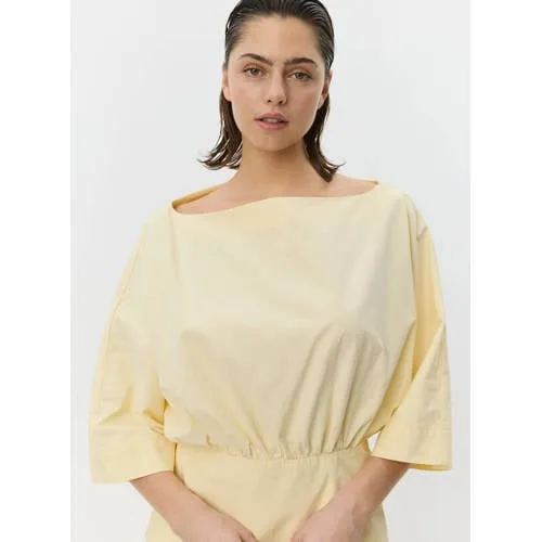 Deze top van Sofie Schnoor, de Sofie Schnoor MIKKASW boat-neck blouse, is een lichte blouse van 100% katoen met een rechte, ontspannen pasvorm. De boothals legt het accent op schouders en hals, terwijl de wijde driekwart mouwen zorgen voor een luchtig silhouet dat losjes rond het lichaam valt.Verfijnde details in een rustige look Gemaakt van 100% katoen, voelt zacht en luchtig aan op de huid Boothals voor een open, horizontale halslijn Driekwart wijde mouwen voor een ruimvallend effect en veel bewegingsvrijheid Plooien geven de top extra vorm en een soepel vallende stof Effen ontwerp zonder print, eenvoudig te combineren met verschillende stijlen Blinde ritssluiting aan de achterkant voor een rustige, strakke afwerking Geen zakken voor een eenvoudig en rustig geheelDraagcomfort in het dagelijks gebruikDe blouse heeft een lichte stof en een ontspannen pasvorm, waardoor deze prettig is voor dagelijks gebruik. De lengte is geschikt om los over de tailleband te dragen en de top kan ook deels in de tailleband gestopt worden voor meer nadruk op de taille.Sofie Schnoor, Scandinavische eenvoudSofie Schnoor ontwerpt kleding met een ontspannen, Scandinavische uitstraling. De collecties combineren draagcomfort met doordachte details, waardoor elk item geschikt is voor alledaags gebruik en verschillende gelegenheden.Een luchtige blouse die je garderobe aanvult met een rustige, vrouwelijke basis.