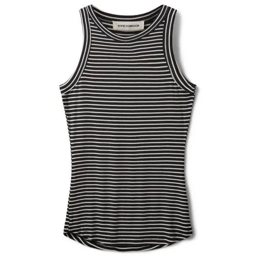Deze zwarte ribgebreide top voor dames van Sofie Schnoor is een veelzijdige basic met een moderne Studio-uitstraling. De top is mouwloos en heeft een ronde hals, waardoor hij mooi aansluit langs je schouders en nek. De zwart/ecru krijtstreep geeft een subtiele, verfijnde look die zowel casual als gekleder werkt. Dankzij het zachte materiaal met stretch voelt deze top soepel aan op de huid en blijft hij de hele dag comfortabel zitten.Belangrijke kenmerken van deze rib top Mouwloze top, ideaal voor warme zomerdagen of als laagje onder een blazer of vest Zwart/ecru krijtstreep voor een stijlvolle, rustige print Rib gebreid materiaal dat mooi aansluit en licht corrigerend oogt Gemaakt van 90% viscose en 10% spandex voor een zachte touch en fijne stretch Ronde hals die comfortabel draagt en makkelijk te combineren is met sieraden Geen zakken voor een clean en slank silhouet Onderdeel van de Studio collectie, met focus op moderne, draagbare itemsZo draag je deze zomerse topDeze ribgebreide top past goed bij een hoge jeans of een rechte pantalon voor een nette look. In de zomer combineer je de top eenvoudig met een korte broek of luchtige rok. De neutrale kleuren maken het makkelijk om er verschillende laagjes overheen te dragen, zoals een blazer voor kantoor of een losvallend overhemd voor een relaxte dag.Sofie Schnoor stijlSofie Schnoor staat bekend om modieuze ontwerpen met een draagbare pasvorm en doordachte details. De collecties combineren feminine elementen met een eigentijdse uitstraling, waardoor je items in de kast hebt die je seizoen na seizoen blijft pakken. Met deze top haal je een stijlvol basisitem in huis dat aansluit bij die moderne, comfortabele signatuur.Een fijne aanvulling op je garderobe voor dagen waarop je zonder moeite een verzorgde look wilt samenstellen.