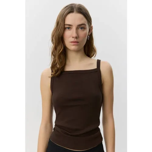 Deze bruine ribgebreide top voor dames van Sofie Schnoor is een praktische basic voor warme dagen en lichte laagjes. De top heeft dunne spaghettibandjes en een vierkante hals, wat zorgt voor een moderne, vrouwelijke uitstraling. De ribstructuur geeft subtiel extra detail, terwijl de effen kleur makkelijk te combineren is met je favoriete broeken, rokken of shorts.Comfortabele stof met stretch Gemaakt van 93% katoen / 7% spandex voor een zachte touch met comfortabele stretch Ribgebreid materiaal dat slank aansluit zonder te knellen Spaghettibandjes en vierkante hals voor een zomerse, luchtige look Effen bruine kleur die goed te combineren is met neutrale en uitgesproken tinten Geen zakken, waardoor de top een strak en gestroomlijnd silhouet heeftIdeaal voor zomerse outfits en laagjesDeze top is een goede basis voor de zomer. Draag de top solo op een warme dag of combineer met een open blouse, linnen overhemd of licht vest als het afkoelt. Door de elastische stof blijft de top goed op zijn plek, of je nu onderweg bent, thuiswerkt of een dagje weg gaat.Sofie Schnoor studio collectieDe studio collectie van Sofie Schnoor richt zich op doordachte basics met een moderne twist. Met aandacht voor pasvorm, kleur en details biedt het merk items die je makkelijk meeneemt in je dagelijkse garderobe en die je seizoen na seizoen kunt blijven dragen.Een bruine zomertop die je eenvoudig combineert en vaak zult gebruiken.