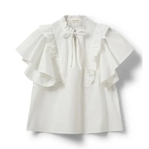 Deze witte katoenen top met vlindermouwen voor dames van Sofie Schnoor geeft je zomergarderobe een frisse en lichte uitstraling. Het effen design in wit laat de details extra mooi uitkomen, zoals de sierlijke volant en de vrouwelijke V-hals. Dankzij het luchtige materiaal van 100% katoen voelt de top comfortabel aan op warme dagen.Luchtige details en vrouwelijke pasvorm Gemaakt van 100% katoen voor een zachte touch en prettig draagcomfort V-hals die het decolleté subtiel accentueert Vlindermouwen zorgen voor een luchtig en soepel effect rond de armen Volantdetail voor een zachte, vrouwelijke uitstraling Striksluiting die je aan de voorkant of achterkant kunt knopen, afhankelijk van de styling Effen witte kleur die gemakkelijk combineert met je bestaande kleding Kortemouwmodel, ideaal voor het zomerseizoenMakkelijk te stylen in jouw dagelijkse looksDeze top past goed bij een rechte jeans, een wijde linnen broek of een korte rok. Draag er sandalen of sneakers onder voor een ontspannen daglook. Voor een nettere uitstraling combineer je de top met een midi-rok en subtiele sieraden.Sofie Schnoor: Scandinavische stijl met oog voor detailSofie Schnoor is een Deens merk dat bekendstaat om zijn moderne, vrouwelijke collecties met een casual chic uitstraling. De ontwerpen hebben vaak bijzondere details, zonder dat ze ingewikkeld worden in het dagelijks dragen. Met deze top haal je een item in huis dat past binnen een zorgvuldige, eigentijdse garderobe.Een lichte, zomerse top waar je het hele seizoen plezier van hebt.