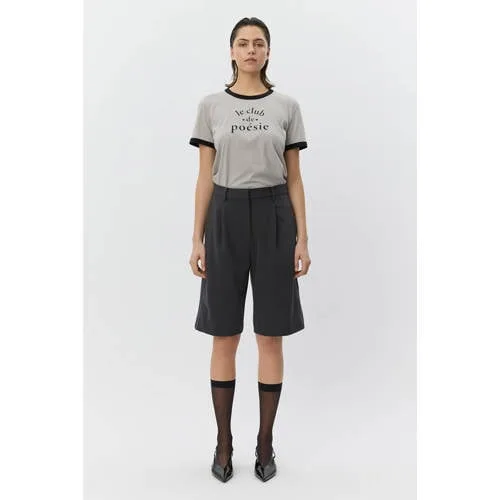 Ga voor een ontspannen, moderne look met deze grijze Sofie Schnoor bermuda korte broek. De ELSASW BERMUDA SUITING SHORTS heeft een wijde pijp en een nette belijning, waardoor de broek zowel casual als gekleder te dragen is. De bermuda-lengte valt comfortabel rond het bovenbeen en geeft je genoeg bewegingsvrijheid voor een actieve dag.Details die het verschil maken Wide leg pasvorm voor een luchtig en recht silhouet Effen grijze kleur die makkelijk te combineren is met basics en statements tops Rits- en haaksluiting aan de voorkant voor een nette afwerking Vijf-pocketmodel met praktische steek- en achterzakken Gemaakt van zeventig procent polyester, vijfentwintig procent rayon en vijf procent elastaan voor een gladde stof met lichte stretchVan kantoor tot casual weekendDeze bermuda past eenvoudig in verschillende outfits. Combineer met een blouse of blazer voor een meer geklede uitstraling, of draag er een T-shirt en sneakers onder voor een relaxte dag. De wijde pijpen en de soepele stof zorgen dat de broek prettig beweegt, ook als je veel onderweg bent.Sofie Schnoor: Scandinavische verfijningSofie Schnoor staat bekend om ontwerpen met een duidelijke, vrouwelijke lijn en een modern karakter. Elk item wordt gemaakt met aandacht voor pasvorm en draagbaarheid, zodat je de pieces vaak en lang kunt dragen. Deze bermuda sluit daar mooi op aan en biedt een stijlvolle basis voor het hele seizoen.Een veelzijdige korte broek die je makkelijk aantrekt als je een comfortabele, maar verzorgde outfit wilt samenstellen.