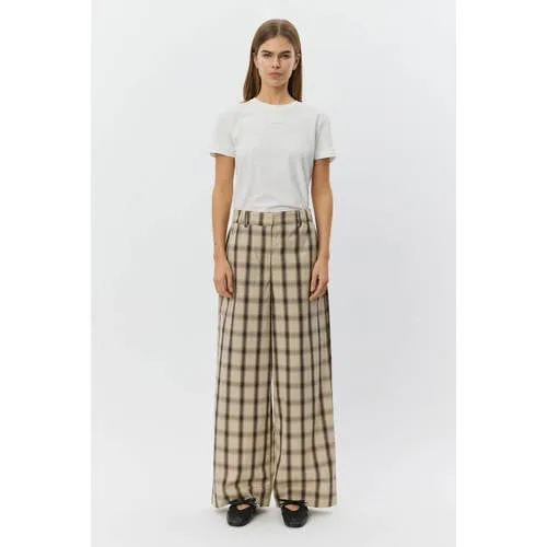 Sofie Schnoor wide leg high waist geruite broek grijsbruin Prijzen