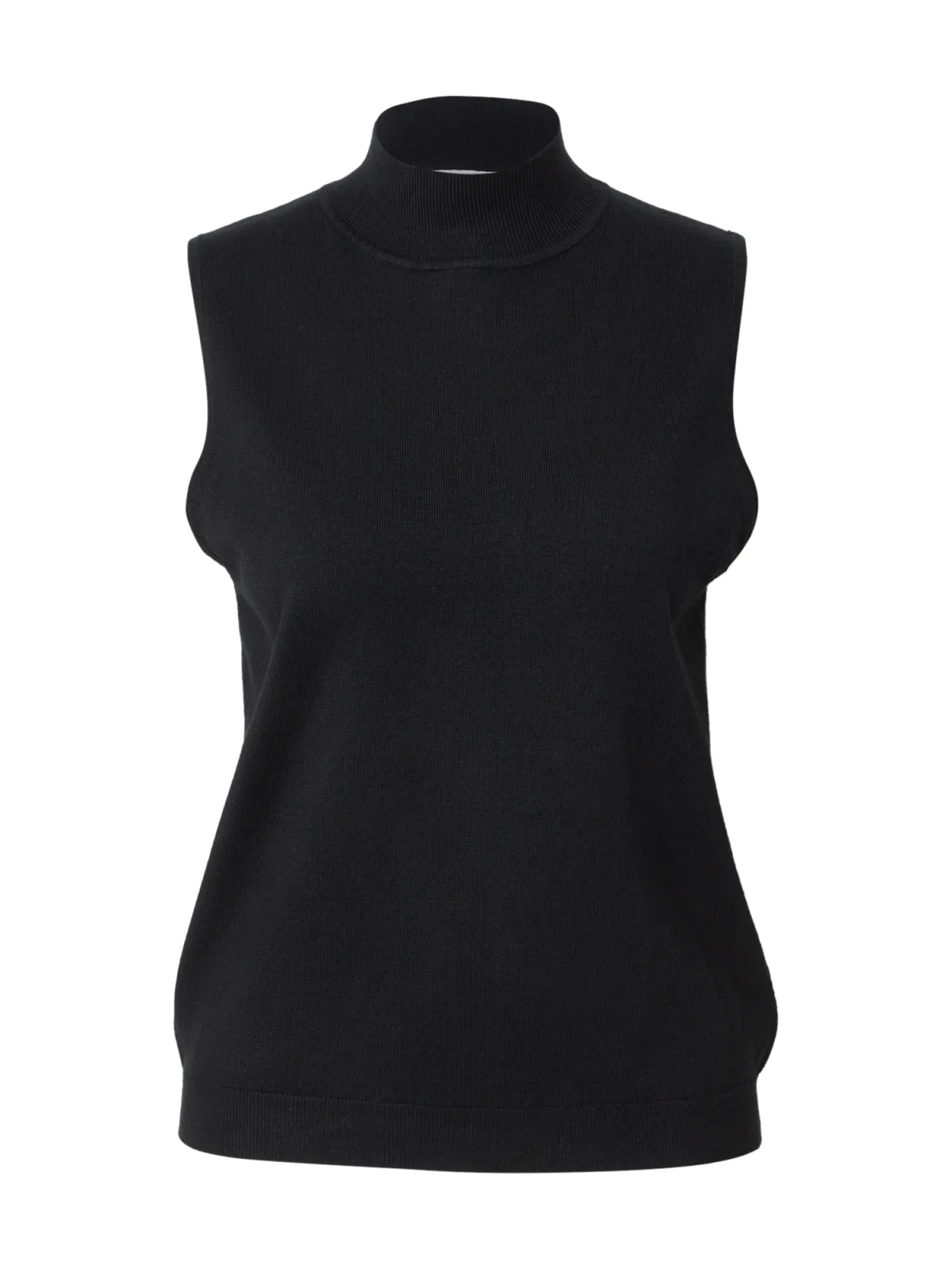 Design: Geribbelde kraag, Recht model, Geribd ceintuurtje; Materiaal: Knitwear; Halstype: Opstaande kraag; Motief: Effen; Extra's: Fully fashioned, Voelt zacht aan; Pasvorm: Normale pasvorm; Armlengte: Mouwloos; Lengte: Normale lengte