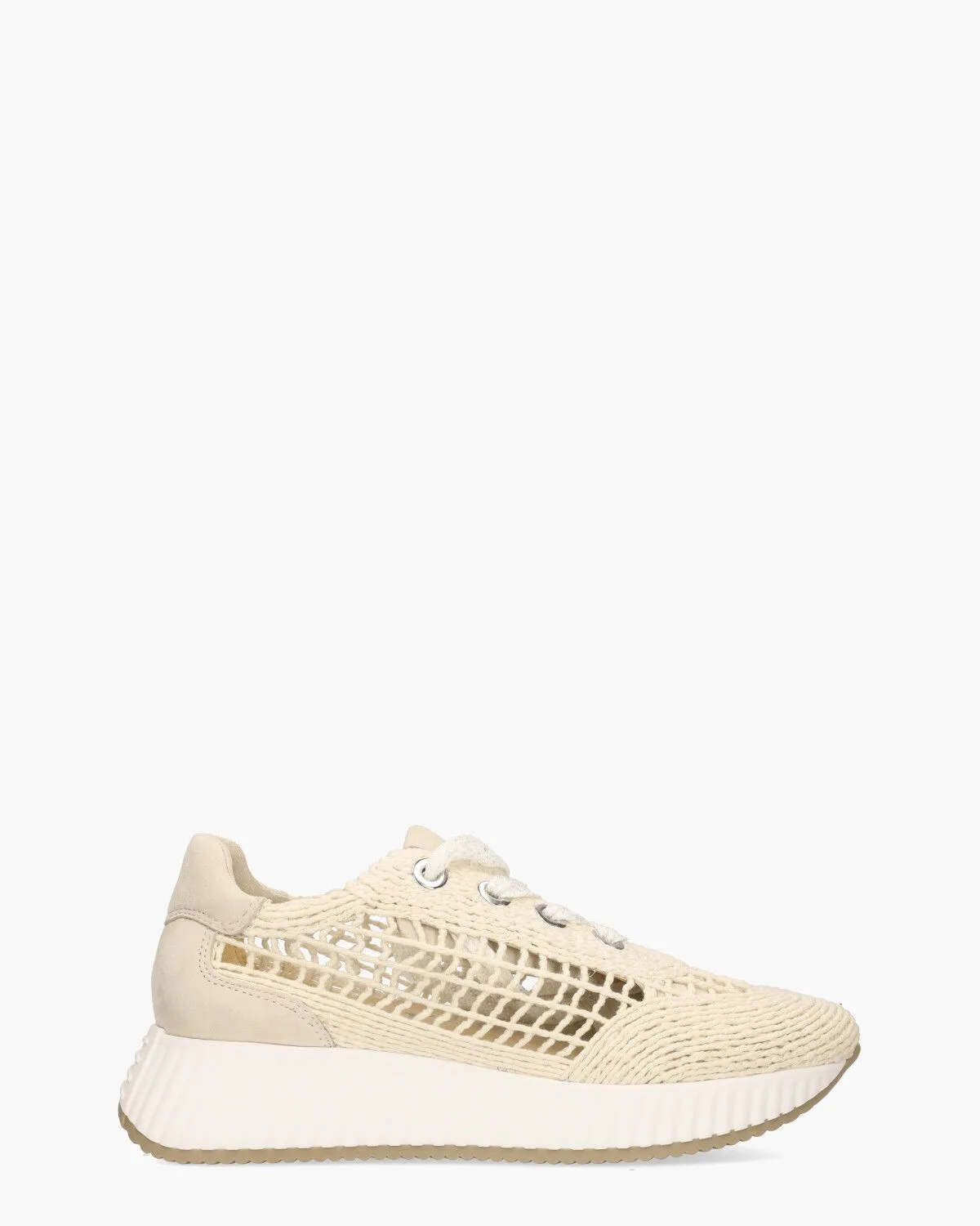 De Atalia damessneakers van Softwaves combineren een chunky silhouet met zomers comfort. Het ecrukleurige opengewerkte gevlochten nylon zorgt voor een luchtige look, terwijl lichtbeige suède accenten het ontwerp een luxe uitstraling geven. De lichte zool in wit en beige dempt soepel en biedt stevige stabiliteit. Binnenin zorgen leer, textiel