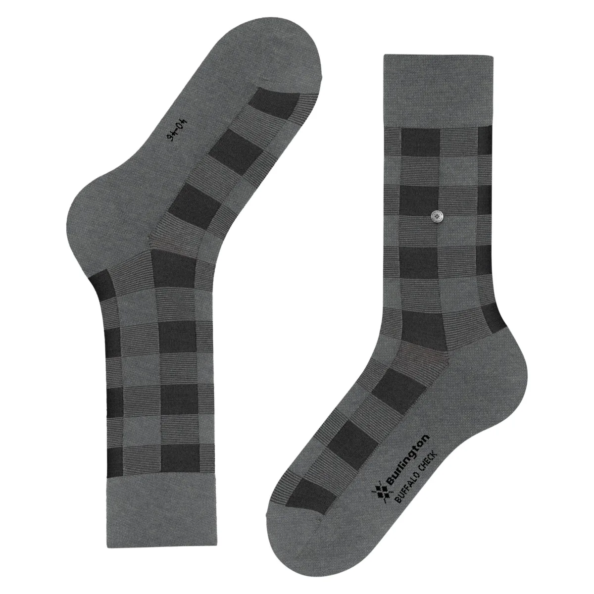 Burlington Buffalo Check one-size, met patroon Wol sokken heren grijs...