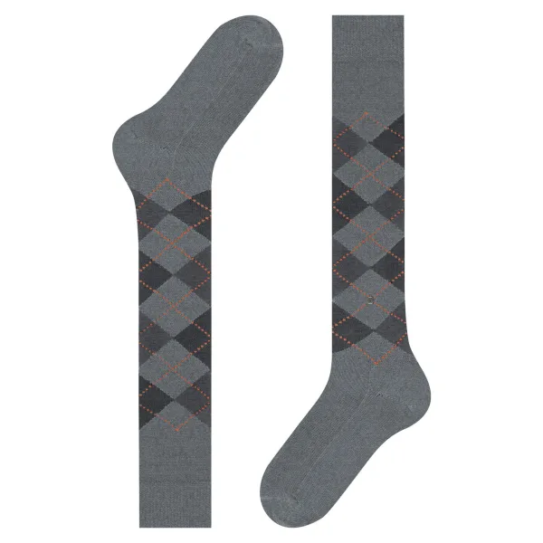 Burlington Preston lang gedessineerd materiaal kniekousen heren grijs