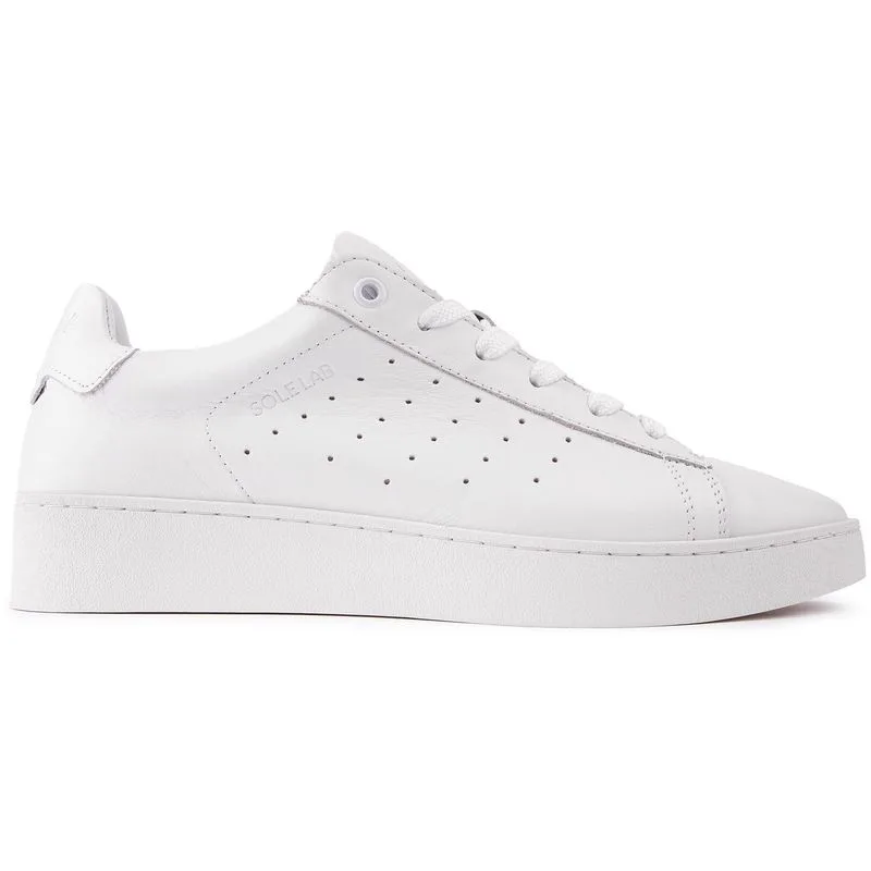 De SOLE Lab Zinc is een stijlvolle en comfortabele tennistrainer. perfect voor dagelijks gebruik. Met een zacht wit leren bovenwerk. leren voering en voetbed. metalen oogje en subtiele perforatiedetails. deze all-in-witte damessneakers zijn ideaal om jouw smart-casual looks compleet te maken.