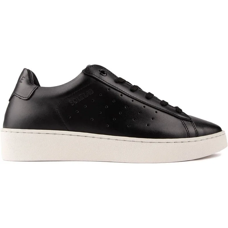 De SOLE Lab Zinc is een stijlvolle en comfortabele sportschoen, perfect voor dagelijks gebruik. Met een gepolijste zwarte leren bovenkant, leren voering en voetbed, metalen veterogen en subtiele perforatiedetails zijn deze herensneakers ideaal om je smart-casual looks compleet te maken.