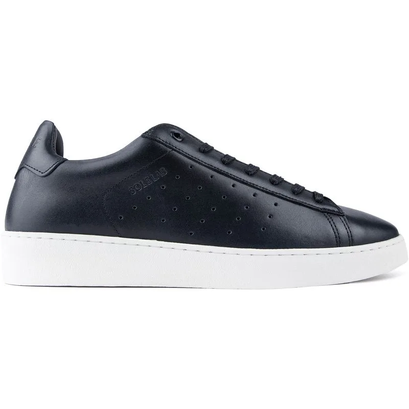 De Sole Lab Zinc is een stijlvolle en comfortabele court trainer, perfect voor dagelijks gebruik. Met een zachte donkerblauwe leren bovenkant, leren voering en voetbed, een metalen oogje bovenaan en subtiele perforatiedetails, zijn deze herensneakers ideaal om je smart-casual looks compleet te maken.