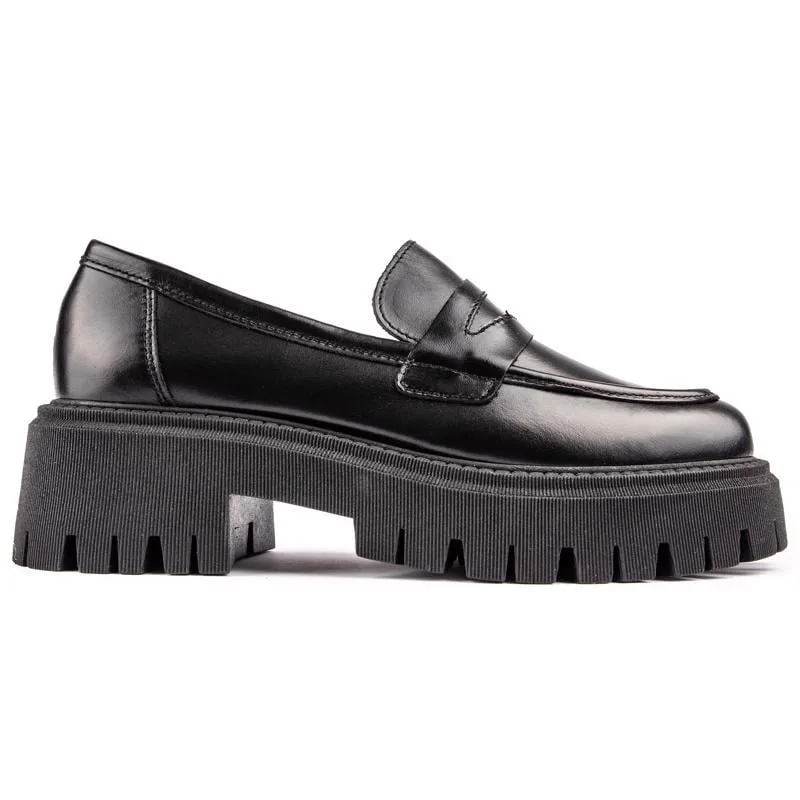 Zet je beste beentje voor. met deze Lexi Penny loafers van SOLE. Deze zwarte. tijdloze maar altijd on-trend damesschoenen die een stijlvolle uitstraling geven. slimme en praktische notitie voor je garderobe. Bovenwerk van premium leer en een schoenplaat. chunky platformzool herinterpreteert het klassieke loafer-silhouet tot een echt eigentijds statement-stuk.