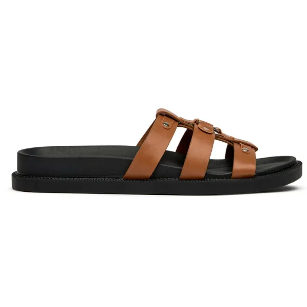 Bruine Solesister sandalen met honingkleurig voetbed voor dames, gemaakt van synthetisch materiaal en een synthetische zool. Uitgerust met een ronde neus en een synthetische voering en binnenzool.