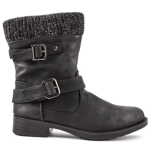 Een klassieke look met een moderne twist. de zwarte SOLE Ness dameslaarzen in bikerstijl zijn de perfecte metgezel voor je casual dagjes uit. De voering van microvezelfleece en de gebreide bovenkant houden je voeten lekker warm. Met metalen gespen met sierbandjes en ritssluiting aan de binnenkant. de laarzen zijn een uitstekende keuze als mode-item of om je outfit een rock-'n-roll-edge te geven. Exclusief voor Soletrader. je vindt het nergens anders.