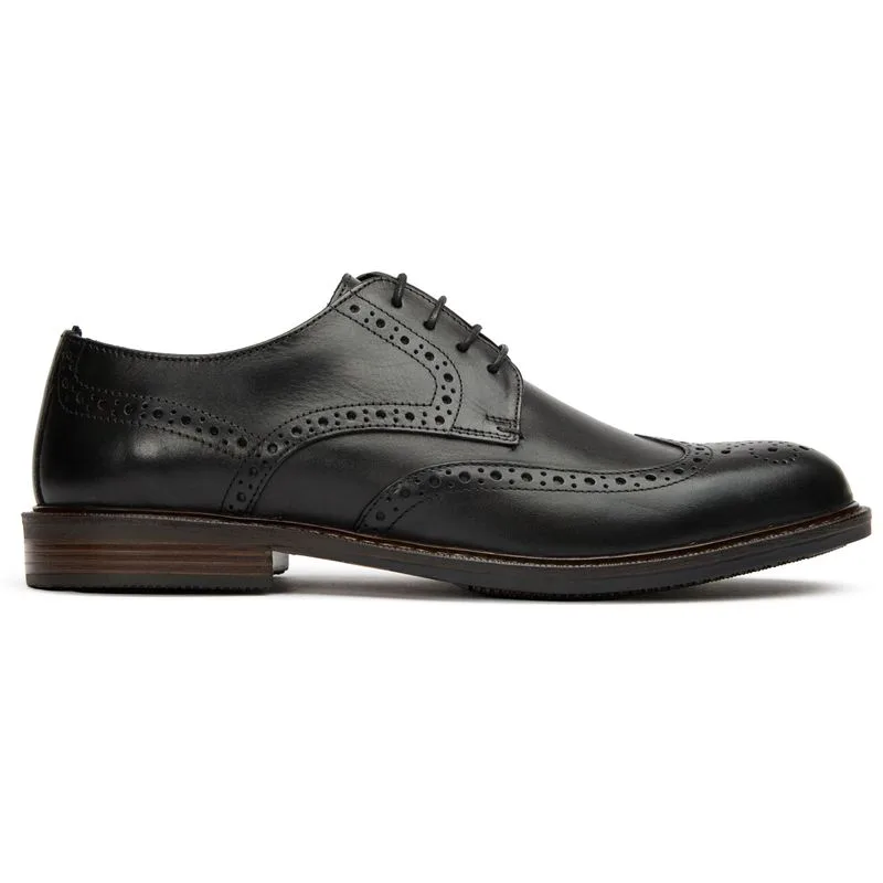 Zwarte Soletrader Barry brogues voor heren, gemaakt van leer en een synthetische zool. Met broguedetails en leren bovenkant.