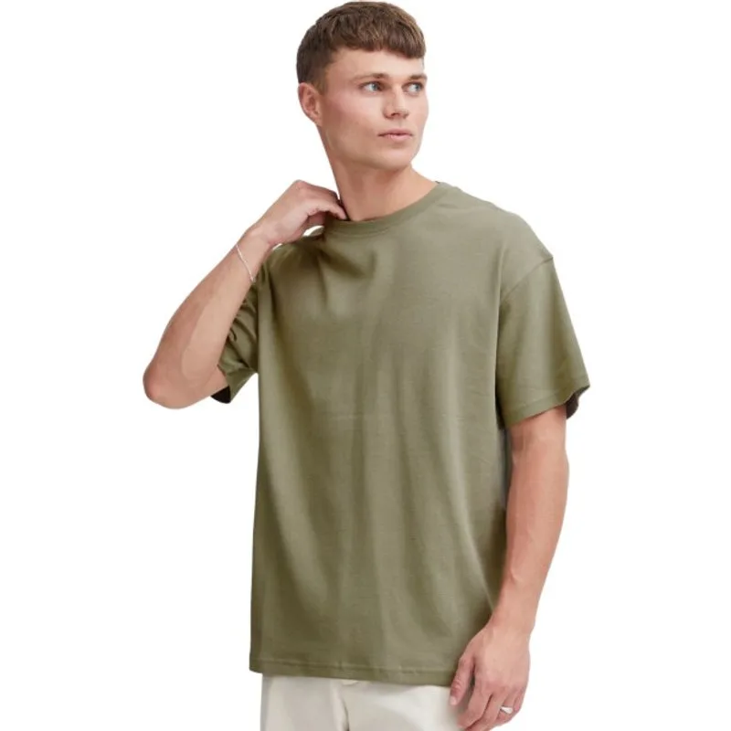 Specificaties: * Pasvorm: box fit; ronde hals * Kleur: olijfgroen * Materiaal: 100% katoen