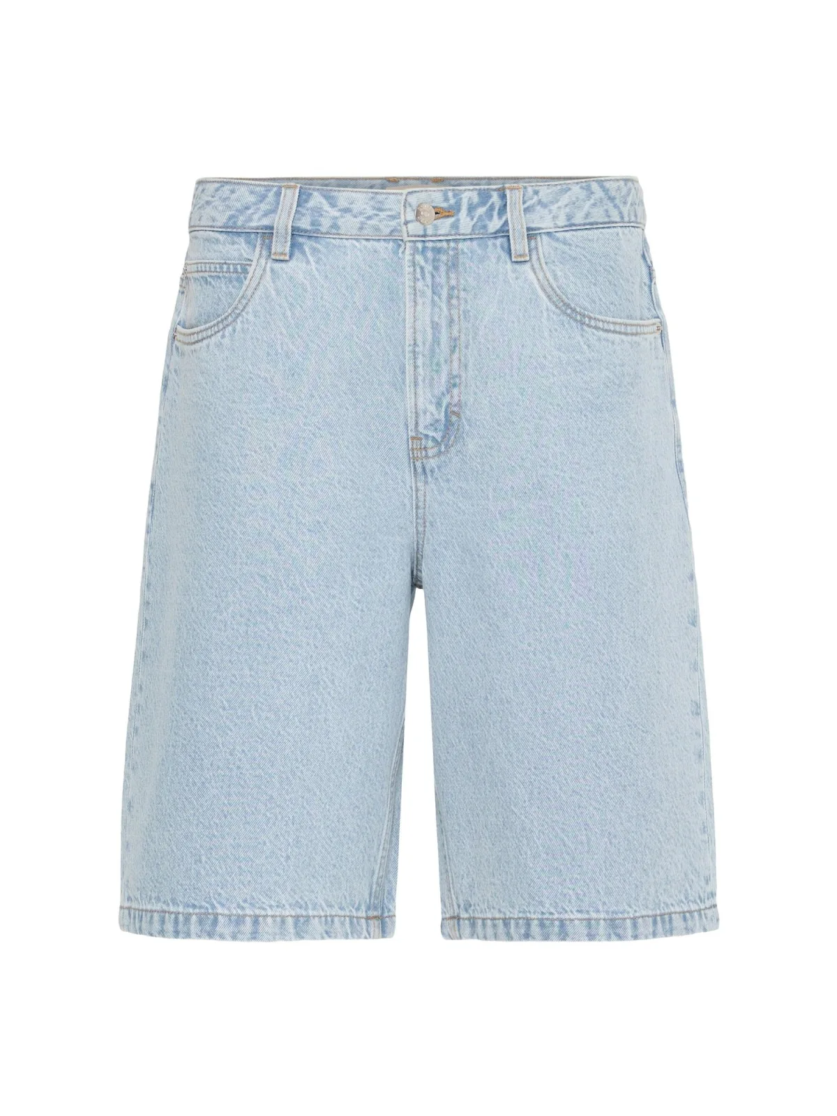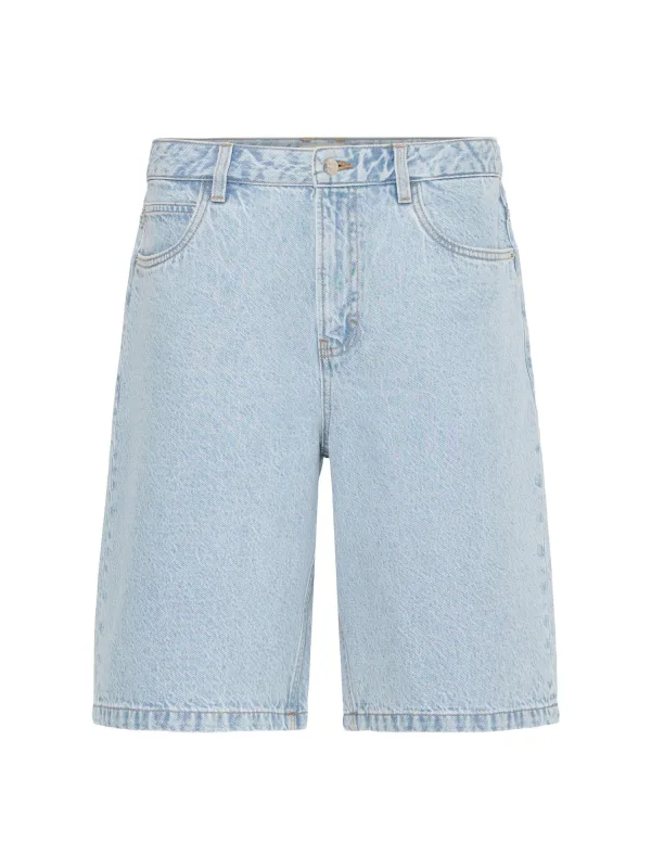Design: 5-pocket-style, Knop sluiting; Type sluiting: Ritssluiting; Materiaal: Denim, Katoen; Motief: Effen; Extra's: Studs, Contrasterende naden, Label patch/label flag, Riemlussen; Wassing: Light washed; Lengte: Knielengte; Pasvorm: Loosefit