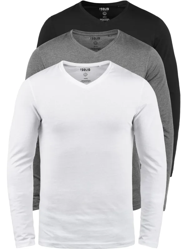 Materiaal: Katoen; Halstype: V-hals; Motief: Effen; Pasvorm: Normale pasvorm; Aantal: 3 Pack; Armlengte: Lange mouw; Lengte: Normale lengte