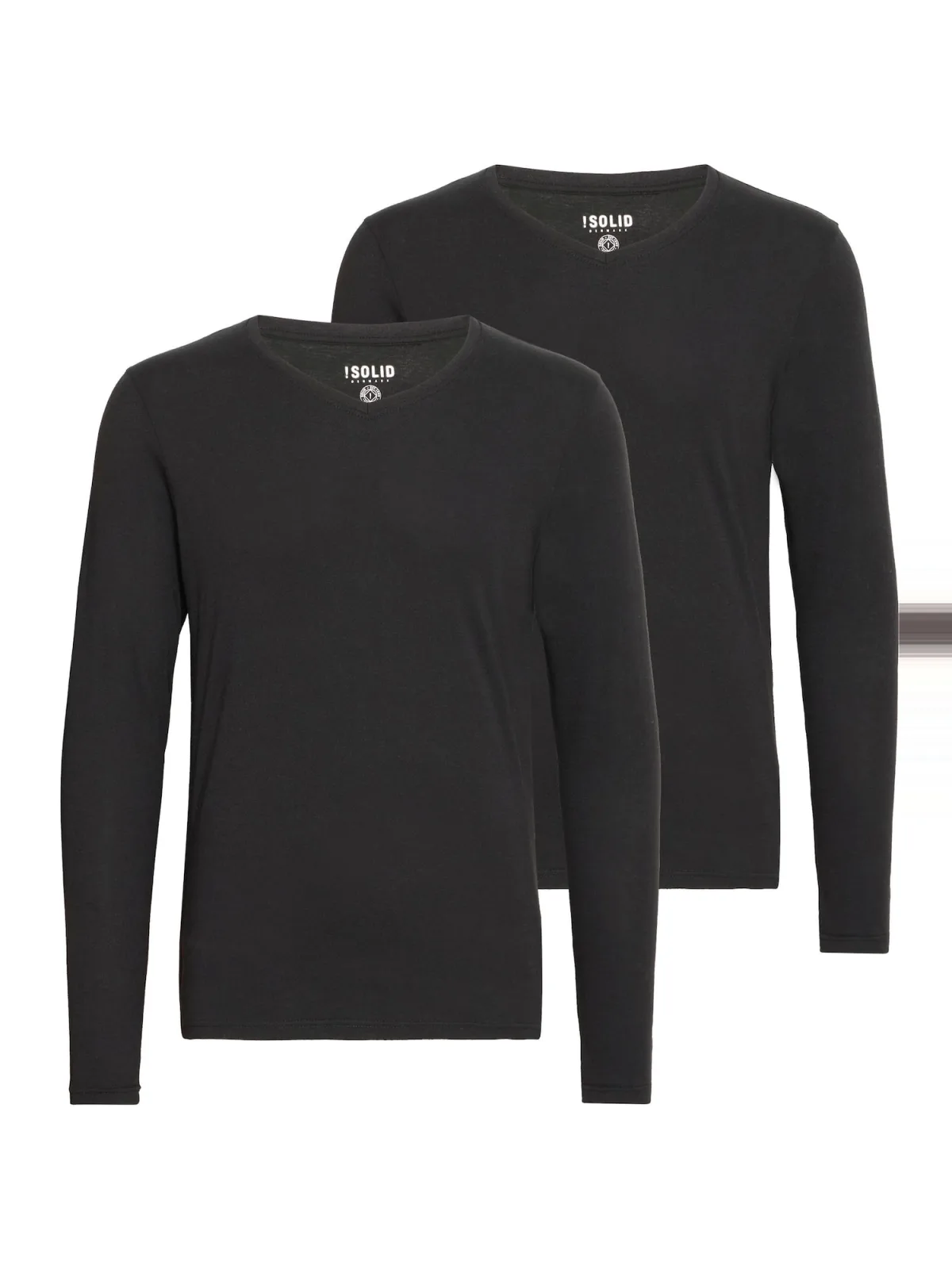 Design: Geribbelde kraag, Rechte zoom, Recht model; Materiaal: Katoen; Halstype: V-hals; Motief: Effen; Extra's: Voelt zacht aan; Pasvorm: Normale pasvorm; Aantal: 2 Pack; Armlengte: Lange mouw; Lengte: Normale lengte