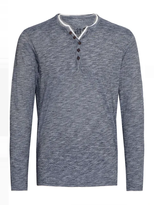 Design: Gevoerde zoom/rand, Recht model, Knop placket; Materiaal: Katoen; Halstype: Henley hals; Motief: Mélange; Extra's: Label patch/label flag, Voelt zacht aan; Pasvorm: Normale pasvorm; Armlengte: Lange mouw; Lengte: Normale lengte