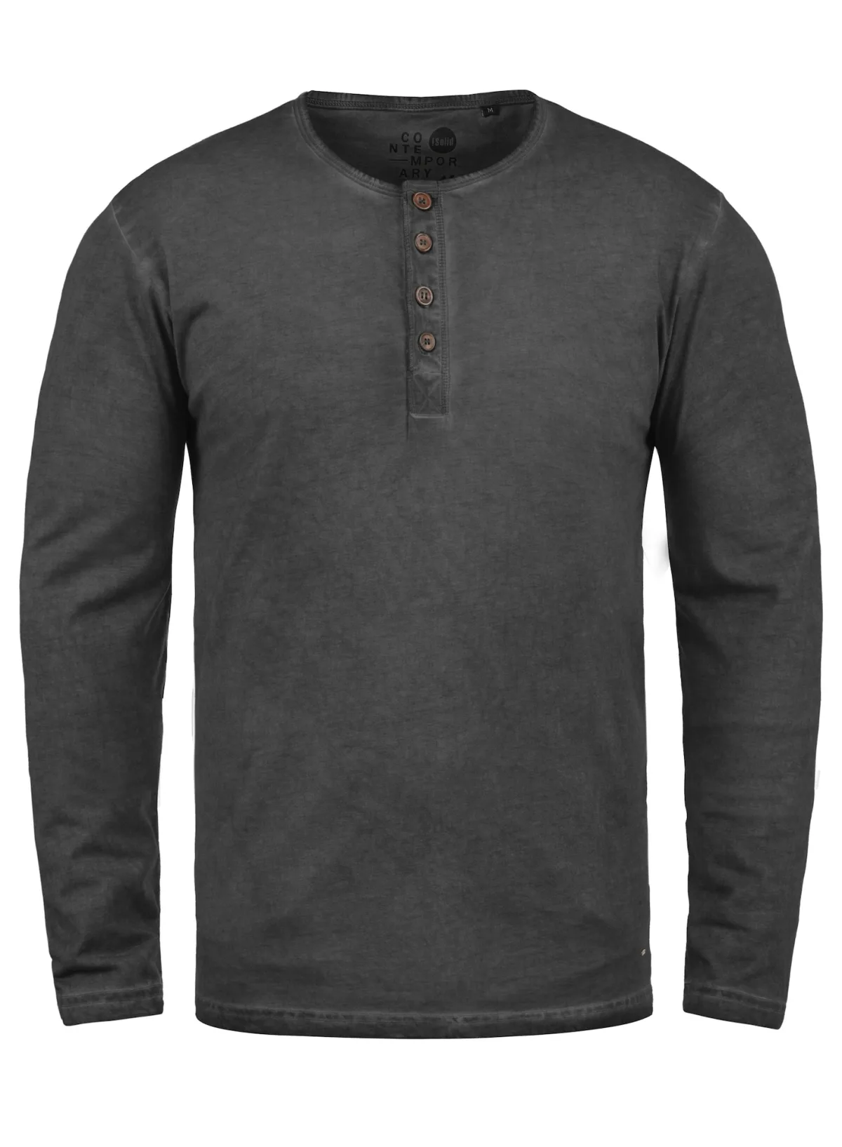 Design: Rechte zoom, Overcut schouder; Type sluiting: Knoopsluiting; Materiaal: Katoen; Halstype: Henley hals; Motief: Mélange; Extra's: Label patch/label flag, Voelt zacht aan; Pasvorm: Normale pasvorm; Armlengte: Lange mouw; Lengte: Normale lengte