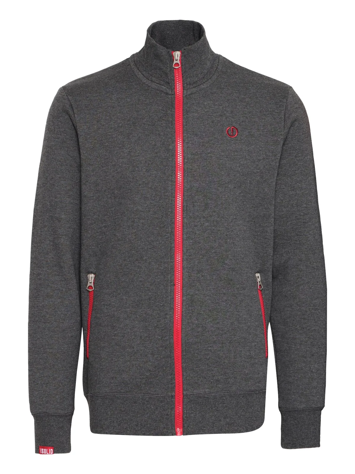 !Solid Sweatvest ‘Benn’ grijs / bloedrood / wit