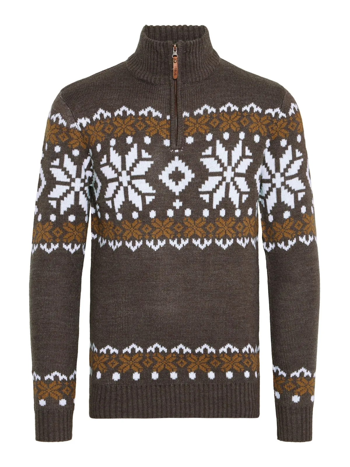 !Solid Trui ‘Norwin’ bruin / lichtbruin / wit