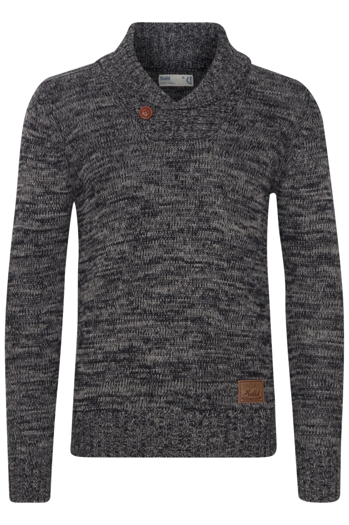 !Solid Trui ‘Phil’ grijs gemêleerd / zwart