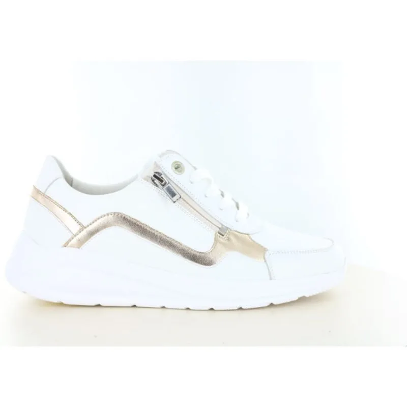 De Solidus 54512 dames sneaker in wit combineert een moderne uitstraling met ultiem draagcomfort. Deze comfortabele veterschoen is uitgevoerd in hoogwaardig leer en afgewerkt met subtiele gouden details, wat zorgt voor een frisse en stijlvolle look die eenvoudig te combineren is met elke outfit.Dankzij de wijdtemaat H/K biedt deze sneaker extra ruimte, waardoor hij ideaal is voor dames met bredere voeten of gevoelige voeten. De combinatie van een vetersluiting en praktische ritssluiting zorgt voor een perfecte pasvorm én extra gebruiksgemak: één keer goed afstellen en daarna eenvoudig in- en uitstappen.Het zachte interieur en de lichte, dempende zool maken deze schoen bijzonder geschikt voor langdurig gebruik, zoals een dag werken, wandelen of winkelen. Bovendien is het voetbed uitneembaar, waardoor je de sneaker eenvoudig kunt dragen met je eigen steunzolen – perfect bij voetklachten zoals hallux valgus of doorgezakte voeten.Solidus staat bekend om zijn uitstekende pasvorm, hoogwaardige materialen en focus op comfort. Met deze sneaker kies je voor een betrouwbare schoen die jouw voeten de ondersteuning geeft die ze verdienen, zonder in te leveren op stijl.