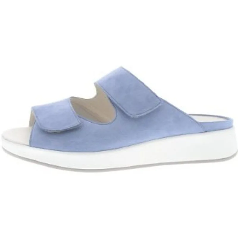 Solidus dames slipper, model Hannah. Dubbele klittenband sluitingen. Dichte flanken voor meer support. De doorlopende zool geeft een stevige middenvoet ondersteuning, terwijl je geniet van een anatomisch gevormde voetbed, dat tevens met klittenband vast zit en uitneembaar is voor een eigen steunzool. Blauw suède. Wijdte H, geschikt voor de iets bredere voet. Hakhoogte 35mm. Hielheffing 15mm.