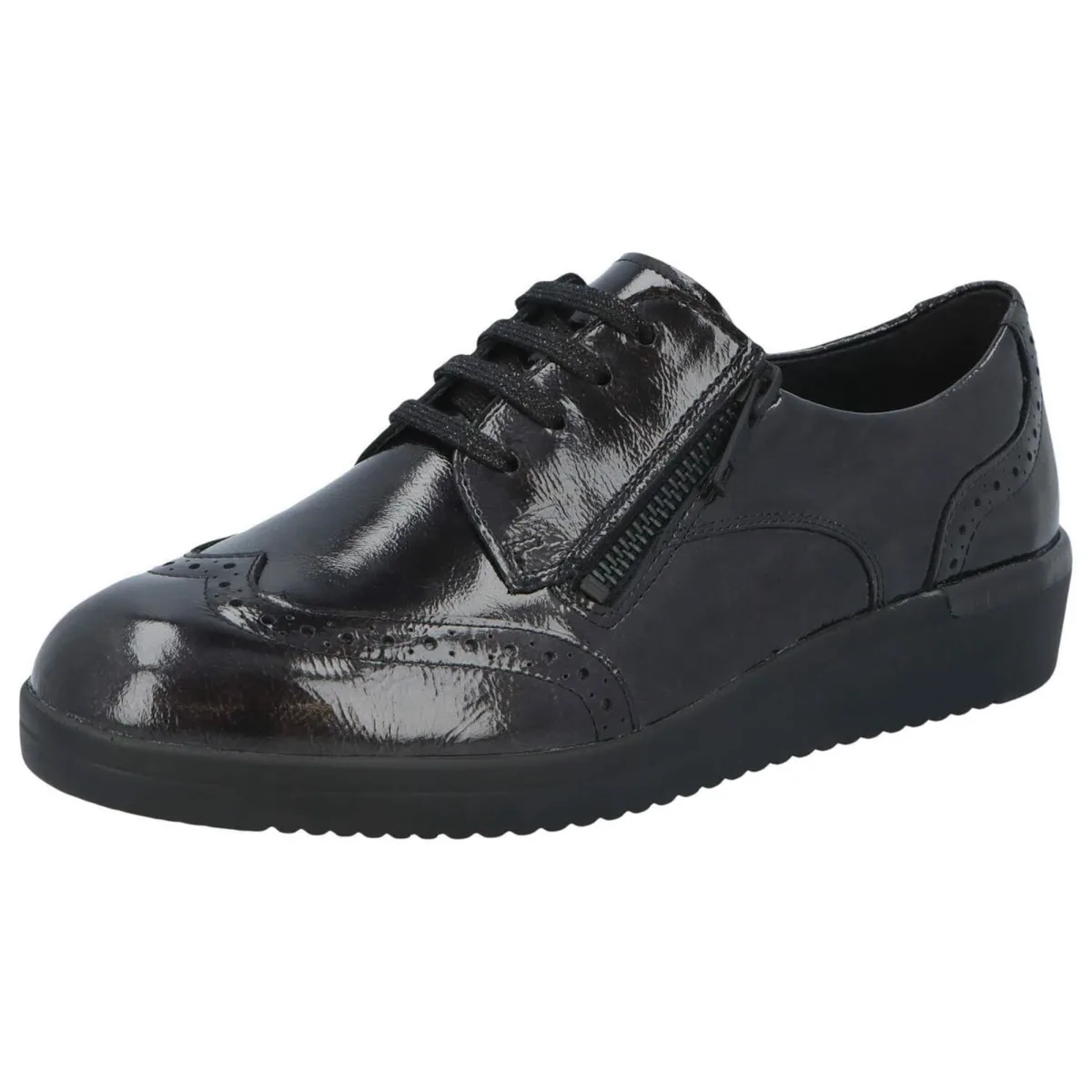 Design: Ritszakken aan de zijkant, Vetering met 4 gaten, Profielzolen, Versterkte hak; Type sluiting: Snoersluiting; Materiaal: Leer; Motief: Effen; Materiaal: Lak; Schoenneus: Ronde neus; Extra's: Stevige stof, Flexibele zool; Hakhoogte: Platte hak (0-3 cm)