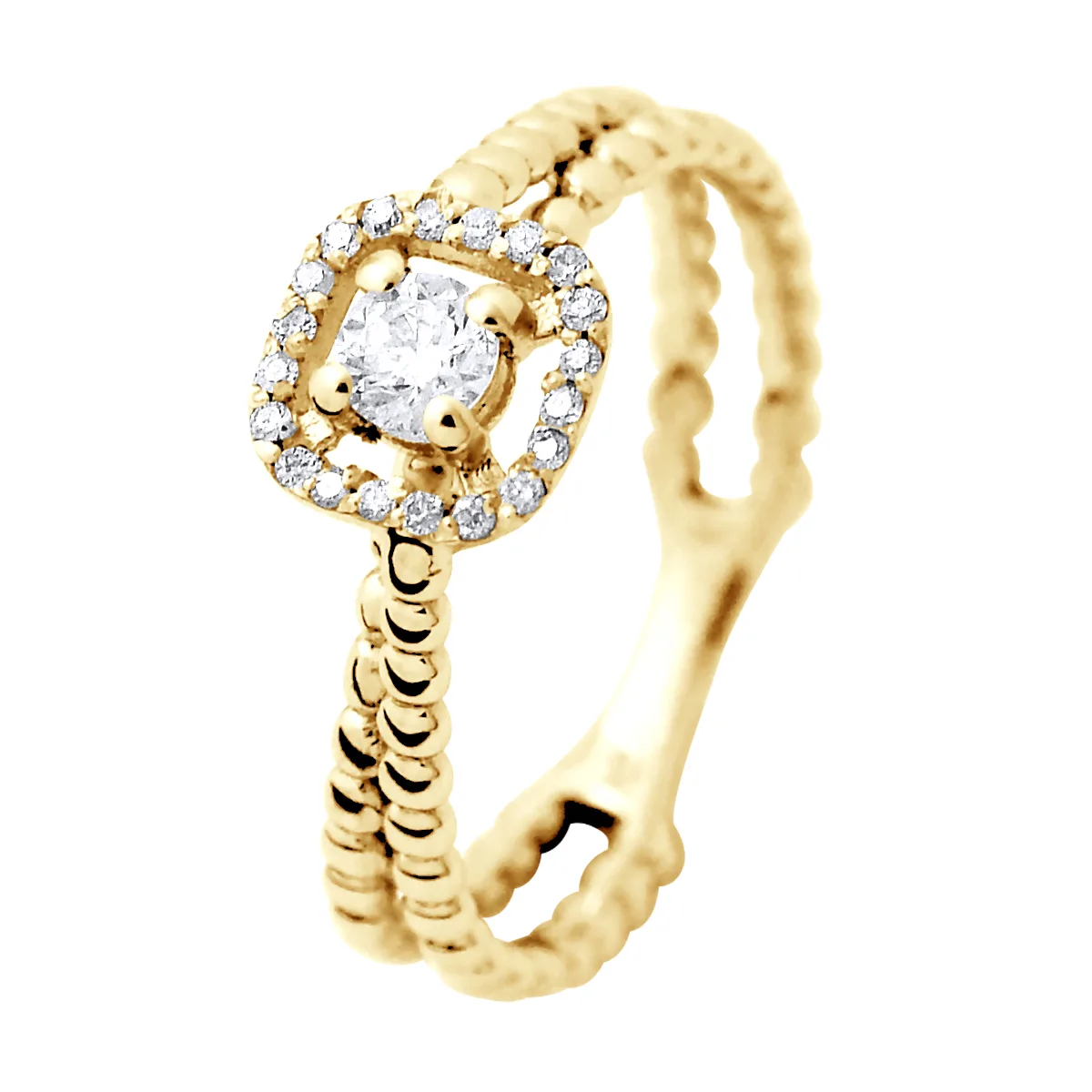 Solitaire Diamonds 0,33 Cts Sieraden House (Stone Center Diamond 0,15 Cts 1x Entourage + 18 x 0,01 CTS) - Quality HSI (kleur H - Quality Si1) - Yellow Gold Jewelry 375 duizendste - maat 48 Beschikbare 62-2 jaar garantie op fabricagefouten - Geleverd in een geval met een certificaat van echtheid en een internationale garantie - zijn Al onze sieraden gemaakt in Frankrijk.