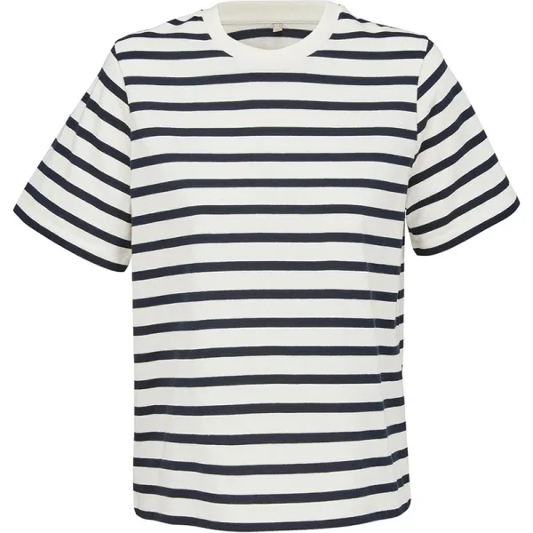 100% organisch gekamd katoen. Stof: Jersey, Gebreid. Ontwerp: Gestreept. Halsuitsnijding: Ronde hals, Ribkraag, Afgeplakt. Mouwtype: Korte mouwen. Zijnaden, tweelingnaaldszoom, tweelingnaaldsmouwen, merkloos maatlabel. Geschikt voor: Modern. 175gsm. Duurzaamheid: ACCORD, Amfori, BSCI, Fair Wear Approved, Gemaakt van Gerecyclede Materialen, PETA-Approved Vegan, REACH, Sustainable Apparel Coalition.