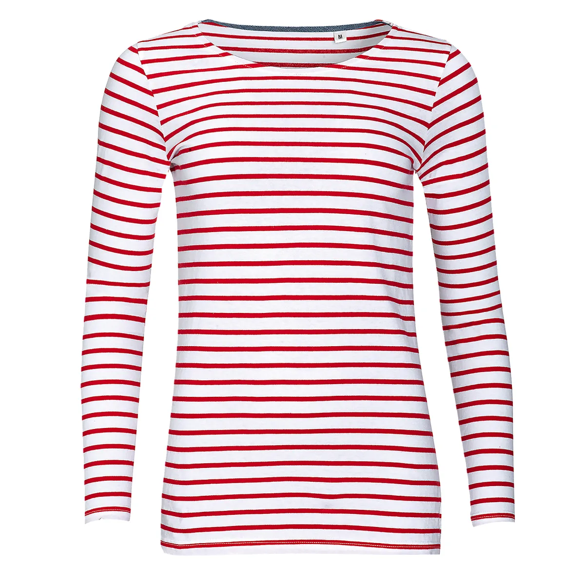 SOLS Dames/dames Marine Long Sleeve Stripe T-Shirt (Wit/rood) Prijzen