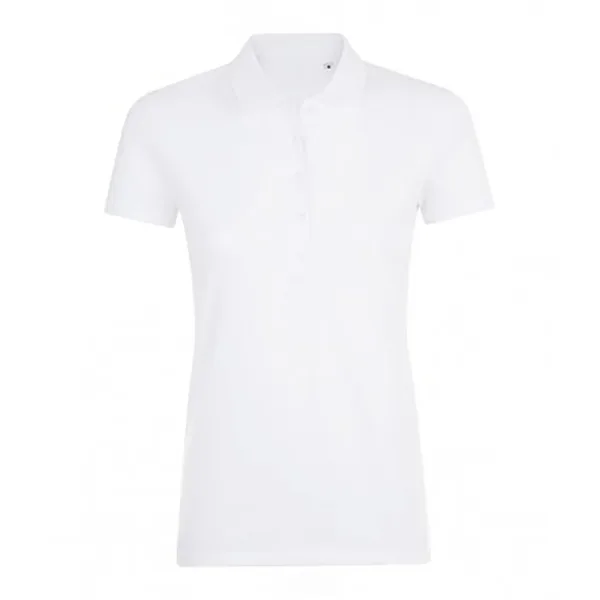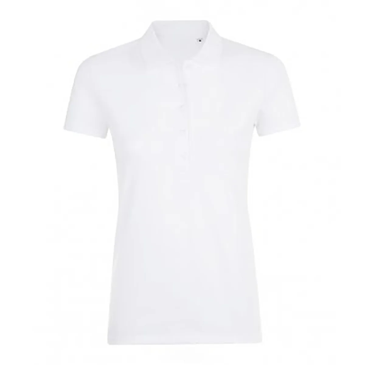 Damespolo. Aangepaste stijl. Geribbelde kraag en manchetten. Getapete hals. Drie zelfkleurige knoopsluiting. Zijwaartse ventilatieopeningen. Labelvrij. 220gsm. Stof: 95% Gekamd Ringspun-katoen, 5% Elastane. Dames Borstomvang: XS: 6/8 UK, S: 8/10 UK, M: 10/12 UK, L: 12/14 UK, XL: 14/16 UK, XXL: 16/18 UK.