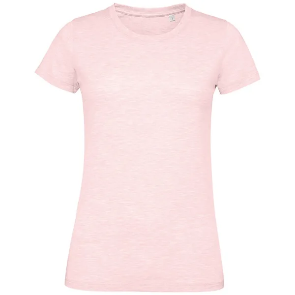 Dames gepast t-shirt. Korte mouwen. Geribbelde kraag. Getapete hals. Dubbele naaldmouwen en zoom. 100% Katoen. *Charcoal marl, heide ossenbloed, heide denim, heide kaki, heide roze en heide hemel 60% katoen/40% polyester. **Grijze mergel 85% katoen/15% viscose.
