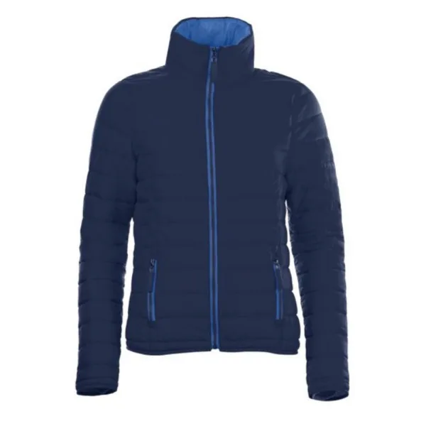 Polyester watten. Nylon voering. Waterafstotend. Aangepaste stijl. Contrasterende voering en ritssluitingen. Kraag hoog voorritsbaar. Opstaande kraag. Twee zakken met rits aan de voorkant. Zelfkleurige band op manchetten en zoom. Materiaal: Nylon buitenkant. Damesmaat: S- 10, M- 12, L- 14, XL-16, XXL- 18.