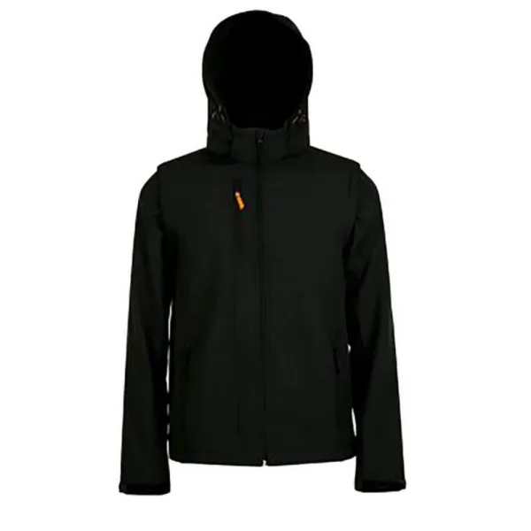 Heren jas. Waterdicht 8000mm en ademend 1000g TPU-membraan. Winddicht. Micro fleece binnenste laag. Afneembare, verstelbare kap met piekhoogte. Ritssluiting over de gehele lengte met binnenste stormflap. Afneembare Mouwen. Een borstzakje met rits en twee zakken met contrasterende rits aan de voorkant.. Verstelbare manchetten. Zoom met trekkoord. Stof: 95% Polyester, 5% Elastane Buitenkant. Herenborst (voor inches): S(36/38), M(38/40), L(41/42), XL(43/44), XXL(45/47).