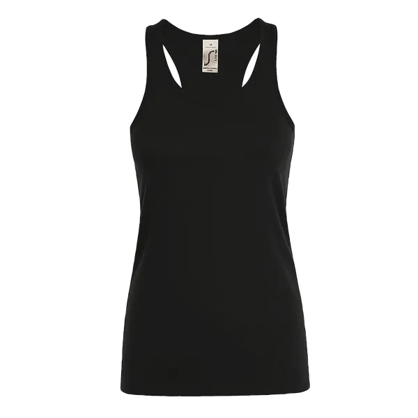 Damesvest. Damespasvorm. Ribbinding aan nek- en armsgaten. Racer back stijl. Buislichaam. Zoom met dubbele naald. 150 g/m². Stof: 100% Semi-Combed Ringspun Katoen. Dames Borstomvang: XS: 6/8 UK, S: 8/10 UK, M: 10/12 UK, L: 12/14 UK, XL: 14/16 UK, XXL: 16/18 UK.
