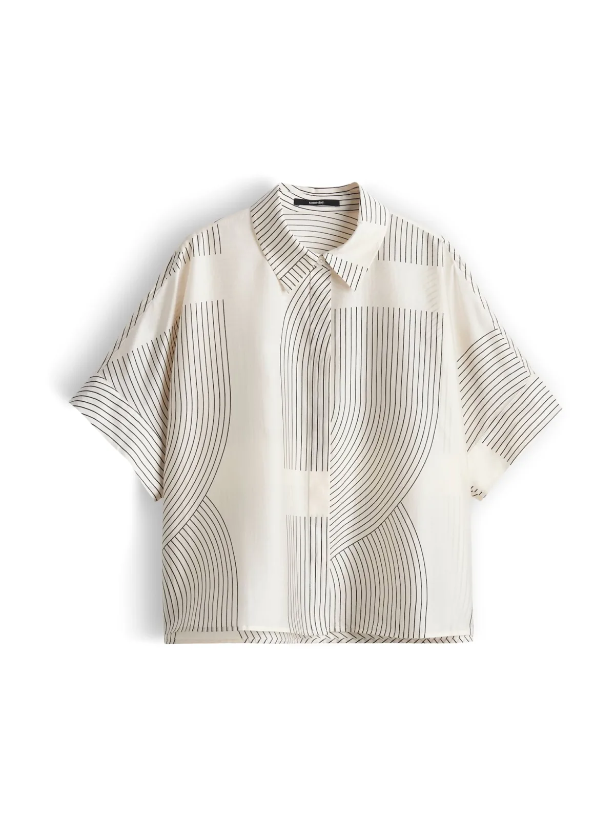 Blouse type: Klassieke blouse; Design: Gevoerde zoom/rand, Verborgen knop placket; Type sluiting: Knoopsluiting; Materiaal: Lyocell; Motief: Gestreept; Kraag: Kentkraag; Extra's: All-over patroon, Voelt zacht aan; Pasvorm: Losse pasvorm; Armlengte: Halve mouw; Lengte: Normale lengte