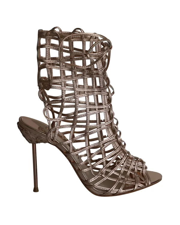 Sophia Webster Delphine Metallic Cage Vetersandalen in Goud Leer