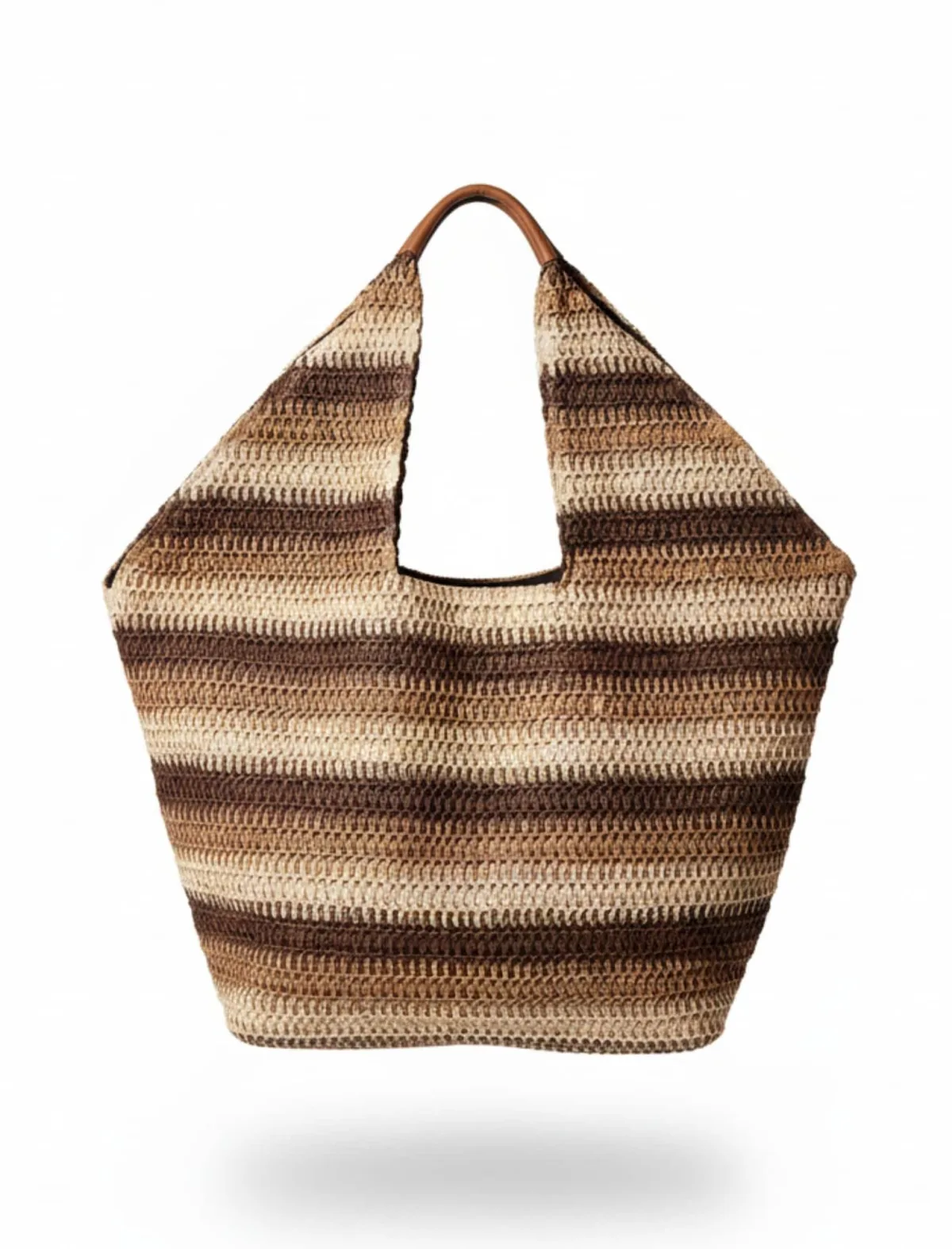 Design: Ruim hoofdvak; Type sluiting: Magnetische sluiting; Motief: Gestreept; Materiaal: Stro materiaal; Hengsellengte: Korte schouderriemen