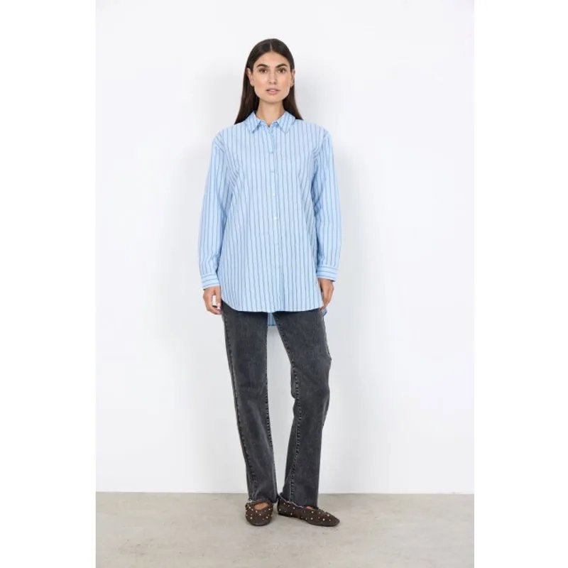 De SC-BARDOT 2 blouse is gemaakt van 53% gerecycled polyester en 47% biologisch katoenDe blouse heeft een kraag, een knoopsluiting aan de voorkant en een verticaal strepenpatroon met een langere lengte. Combineer het met een pantalon of jeans voor een stijlvolle look. Materiaal 53% Recycled Polyester, 47% Organic cotton Lange mouwen Valt lang Wassen op 30°C, Niet bleken, Niet in de droogtrommel, Strijken op lage temperatuur