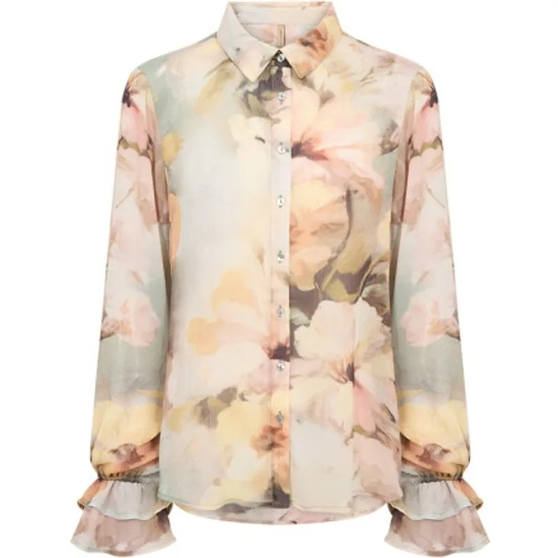 Dames Blouse van Soyaconcept;regular fit;Allover-look;model 'CARMEN';overhemdkraag;ruche;Ruglengte bij maat S: 58 cm;Mouwlengte bij maat S: 64 cm
