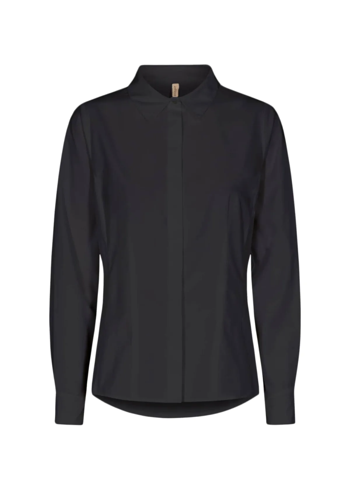 Blouse type: Klassieke blouse; Design: 2-knoops manchetten, Rechte manchetten, Ronde zoom, Verborgen knop placket; Type sluiting: Knoopsluiting; Materiaal: Gerecycled materiaal; Motief: Effen; Kraag: Kentkraag; Extra's: Op staal naden, Lichte stof, Luchtige stof; Pasvorm: Slanke pasvorm; Armlengte: Lange mouw; Lengte: Normale lengte