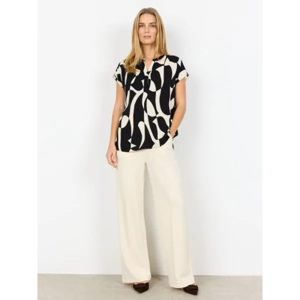 SC-CHANISE 1 is een blouse gemaakt van 100% LENZING™ ECOVERO™ viscose. De blouse heeft een moderne splitkraag, knoopdetails en een opvallende abstracte print. Combineer hem met de bijpassende broek of een casual jeans voor een elegante look. Materiaal 100% viscose Korte mouw
