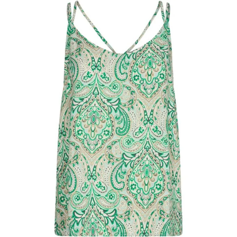 Deze Soyaconcept singlet in het prachtige groen dessin is een must-have voor elke modebewuste dame. Met zijn mooie paisleyprint en dubbele spaghetti bandjes is dit een echte eyecatcher. De ronde hals zorgt voor een vrouwelijke touch en geeft je de mogelijkheid om deze top op verschillende manieren te stylen. Dankzij het gebruik van 100% viscose materiaal voelt dit singlet heerlijk zacht en comfortabel aan op je huid. Perfect voor een zomerse dag of om te dragen onder een blazer voor een chique touch. Haal nu deze prachtige Soyaconcept singlet in huis en upgrade jouw garderobe met een vleugje groen. Bestel snel en eenvoudig bij Nummerzestien en geniet van deze trendy toevoeging aan je kledingcollectie!