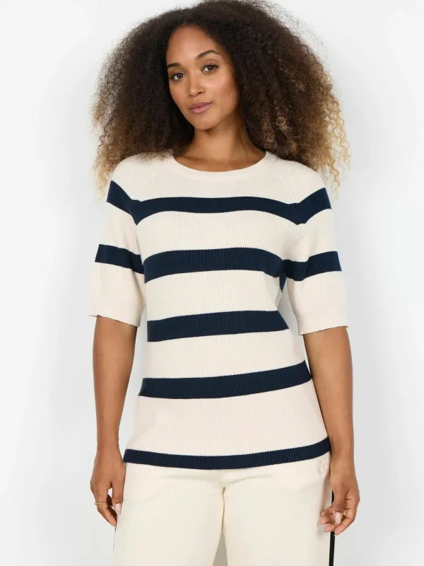 Design: Geribbeld gebreid; Materiaal: Knitwear; Halstype: Ronde hals; Motief: Gestreept; Extra's: All-over patroon; Pasvorm: Normale pasvorm; Armlengte: Halve mouw; Lengte: Normale lengte