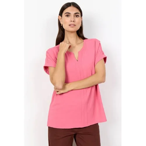 Deze Soyaconcept ds top woven is een praktische basic voor elke dag. De effen top heeft een V-hals en korte, rechte mouwen, waardoor het model luchtig en soepel valt. Gemaakt van een gladde, lichte stof voelt het materiaal prettig aan op de huid en is het geschikt voor het lente seizoen. De rustige vormgeving maakt deze top makkelijk te combineren met je bestaande garderobe.Details die je graag draagt Effen design dat rustig oogt en eenvoudig te stylen is V-hals die zorgt voor een open halslijn Korte, rechte mouwen voor een heldere en eigentijdse uitstraling Lichte, gladde stof die soepel om het lichaam valt Geen zakken voor een strak en rustig silhouet Geschikt voor standaardmaten binnen de damescollectieGeschikt voor werk, weekend en alles ertusseninDeze top uit de Feminine collectie leent zich goed voor zowel zakelijke als casual outfits. Combineer met een nette broek of rok voor een rustige look op kantoor, of draag het model op een jeans voor een ontspannen dag. Door de effen kleur vormt de top een duidelijke basis onder een blazer of vest.Soyaconcept: vrouwelijke stijl voor elke dagSoyaconcept biedt toegankelijke mode met een vrouwelijk karakter. De collecties zijn ontworpen met oog voor draagbaarheid, vorm en pasvorm. Zo voeg je eenvoudig basics toe aan je kast die bij veel outfits passen.Een veelzijdige top die je gemakkelijk draagt van werkdag tot vrije tijd.